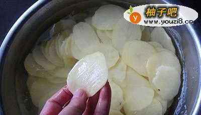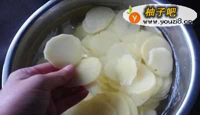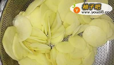 2接着,将土豆切成薄片备用。