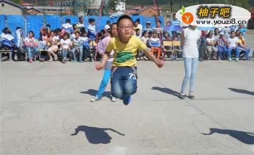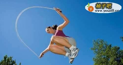 4过一会以后,你能加快摇绳速度了(记得要靠手腕摇,双手加紧身体),双飞的起跳时间比基本跳晚,当你看到绳子快到地上了就跳