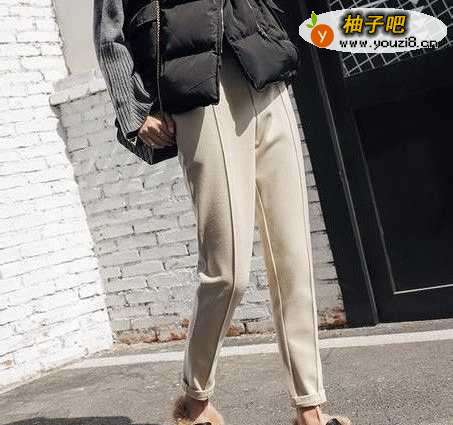 搭配五:深灰色毛呢西装裤+白色棉马甲+焦糖色毛衣深灰色毛呢西装裤是秋冬季穿的最多的,比较好搭配衣服,搭配一件焦糖色毛衣和白色棉马甲,是很平时保暖又不乏时尚感的搭配。