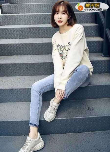 搭配六:香芋紫色宽松卫衣+白色小脚裤+灰色老爹鞋香芋紫色是最近特别流行的一种颜色,这款香芋紫色宽松卫衣是非常个性的、显瘦的,搭配一条白色小脚裤,再搭配一双灰色老爹鞋,韩国小姐姐既视感。