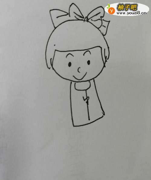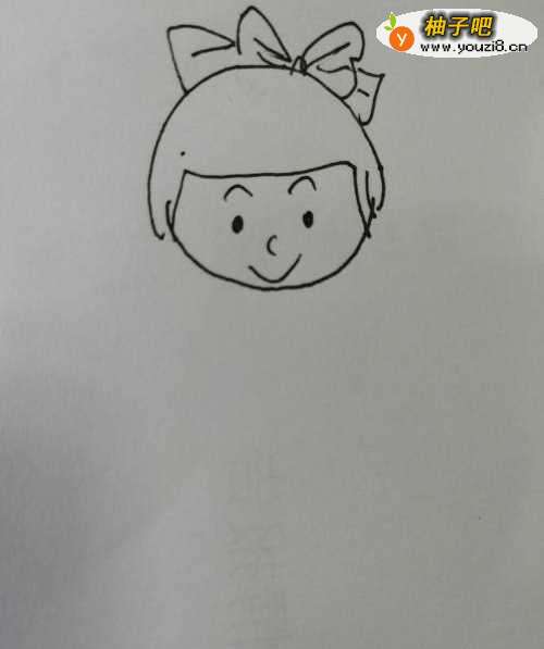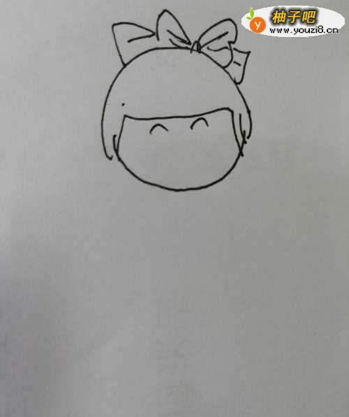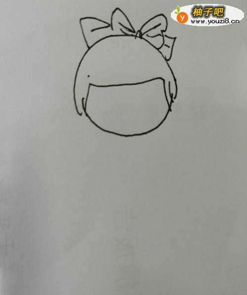 2第二步,接着在小女孩子的头发上面画出一个漂亮的蝴蝶结,蝴蝶结画法比较简单。