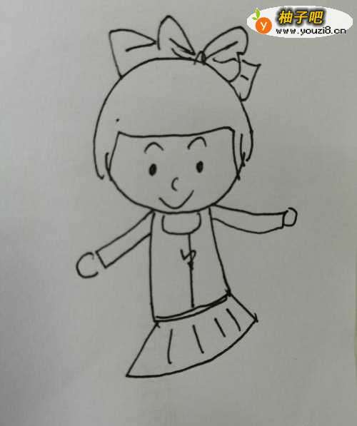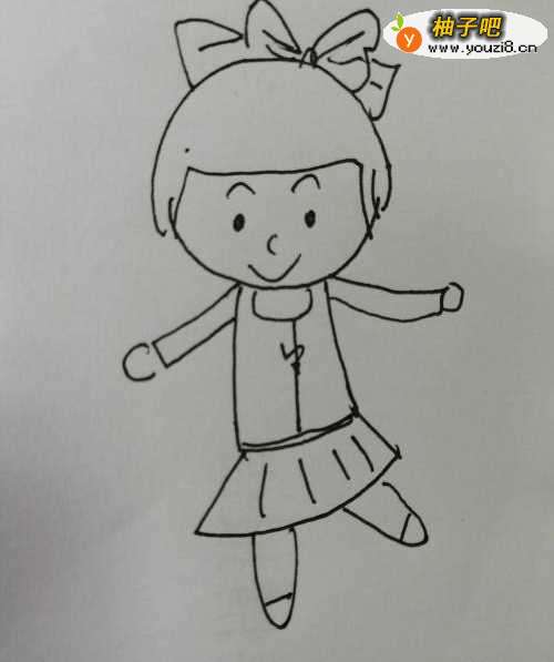 7第七步,最后把可爱的小女孩子的两条腿画出来。简笔画可爱的小女孩子就画好了。