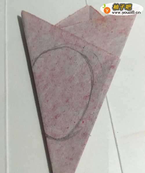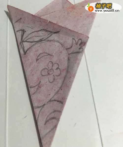 4第四步 折叠完之后翻过来 整理一下 拿起绘图铅笔 画上一个卡通苹果的外线轮廓