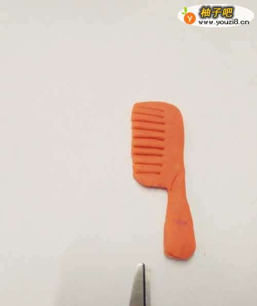 2先用桔红色捏出梳子的大概样子。