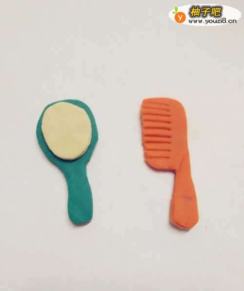 我们每天都会用到梳子和镜子,下面就用彩泥做一套。