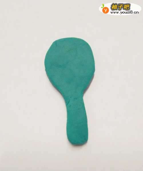 4再用蓝色做一个带把儿的小镜子形状,这个蓝色当作镜子后面的塑料片。