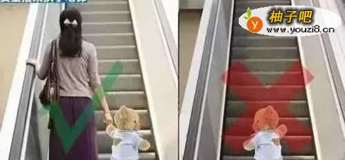 ②不能在手动扶梯上随意走动、跑跳、蹲坐,不然很容易摔跤、跌落,愈加是扶梯进出口处,更不应嬉戏逗留