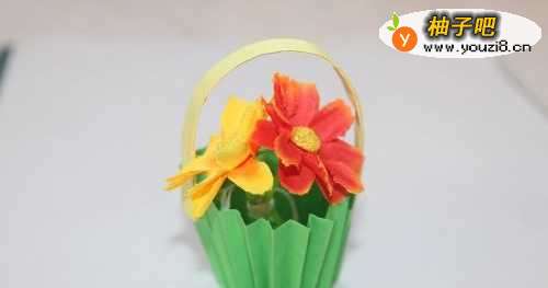 4将直径为3cm的圆形孝追纸粘到花篮的底部。