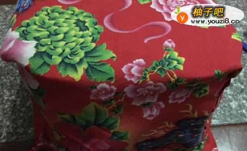5在奶粉罐底部能用一些购物袋坐填充,这样能让奶粉罐凳子更为耐用。然后用线把奶粉罐四方缝好,如图。