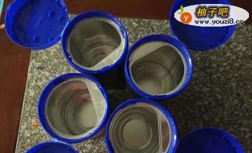 准备好4个奶粉罐和包装袋。