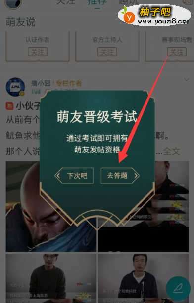 5如果没有获得发帖资格,在点击发帖图标时,会警告让我们进行考试。我们点击【去答题】按钮即可进行答题。