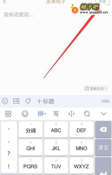 4进入发帖界面后,我们输入想要发帖的内容,然后点击右上角【发表】按钮就能把帖子发出去啦。