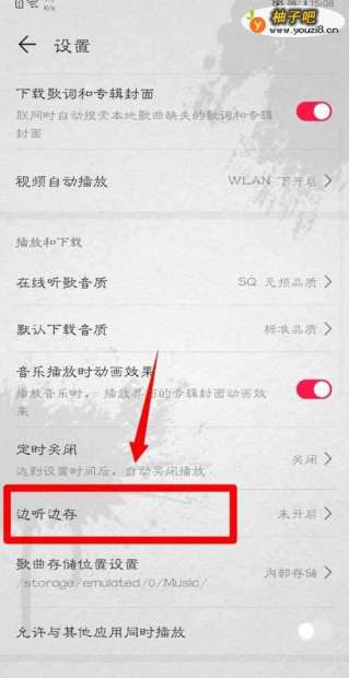 5紧接着在跳转的界面中找到“边听边存”使用点击。