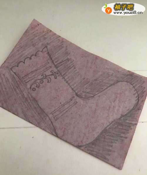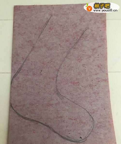 2第二步 从下向上对折好之后 再把它竖起来 双边放在左边 然后用绘图铅笔从双边处开始画上袜子的大体轮廓