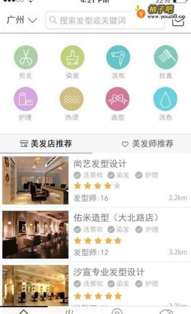 首先,首页会根据你所处的位置为你推荐附件的签约商家,你能在这些商家里面挑选任意一家选择做你喜欢的美发护理。