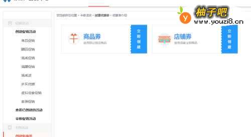 首先是配置优惠券,店铺或者商品券。入口依次为:【商家后台-促销推广-优惠券管理】,然后点击【立即创建】