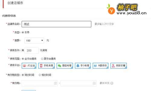 2根据店铺活动和促销需要,开始配置优惠券详情。
