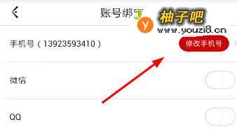 7那么进入账号绑定,就能点击修改手机号,如图所示
