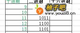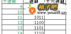 新建或开启Excel表格,输入下图所示的内容,便于后续案例介绍,其中前面那一列十进制的数据供参考。