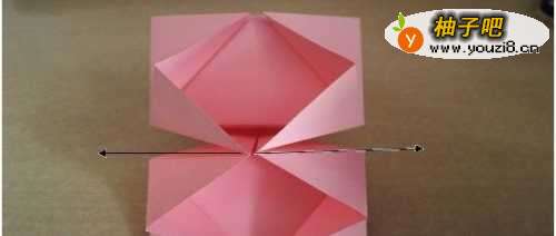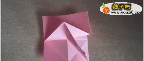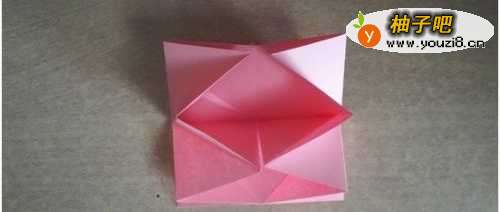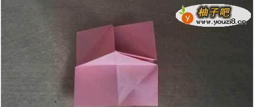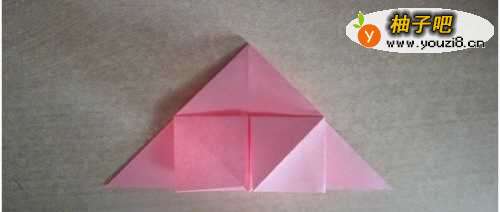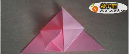 10把中间的部分分别向两边翻,过程如下图所示。这步折好之后,转到背面。