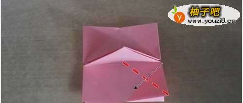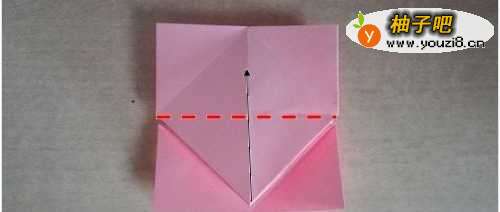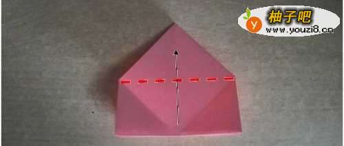 8折成这样之后,沿着图中的虚线把下面的部分整体向上折。