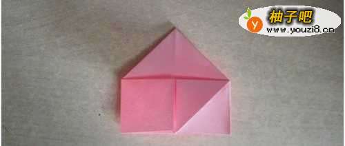3接着,就折成了这种形状,然后沿着图中的虚线把下面的两个角折上去。