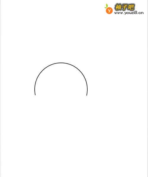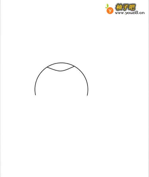 3接下来把脑袋用半个椭圆形画出来。