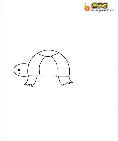 5接下来画出小乌龟的两只脚,脚爪子画的尖尖的哦,然后把小小的尾巴也画出来。