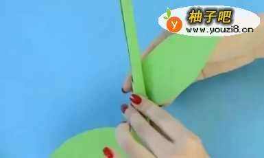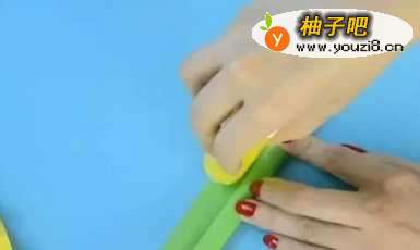 7再拿出一张长的绿色卡纸,卷出一条细长筒,做向日葵的花茎。