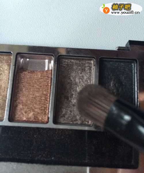 3眼窝处打上淡淡的棕色眼影~