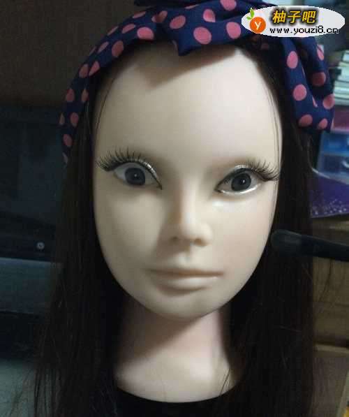 5贴上眼睫毛,选择睫毛最好选择眼尾渐长的睫毛,贴出来比较漂亮~