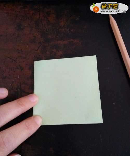 2首先我们先把彩纸中线对折,要把边缘线对齐,方便好继续折。争孝压