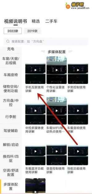3帕萨特汽车视频说明书页面,选择多媒体使用,手机互联使用讲解。