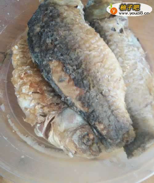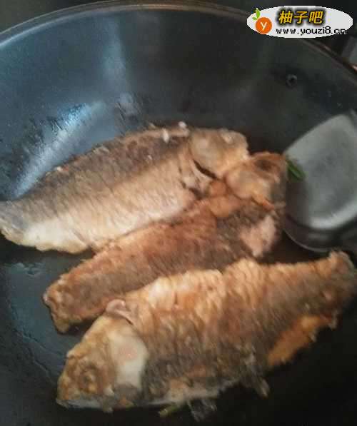 将鲫鱼收拾好,煎成两面金黄待用。