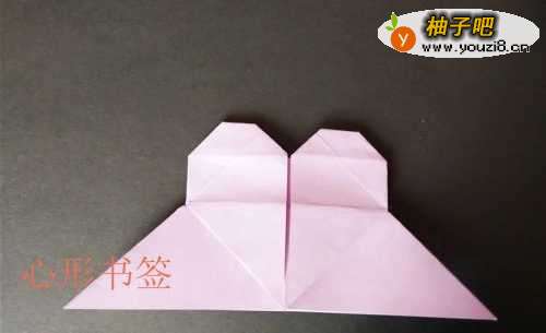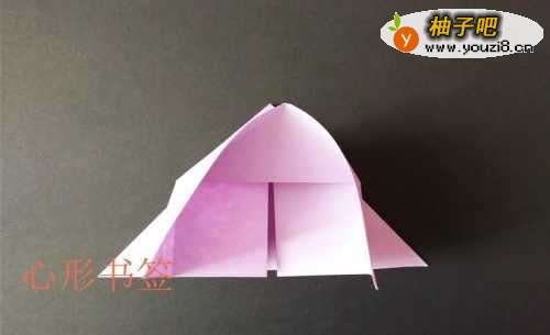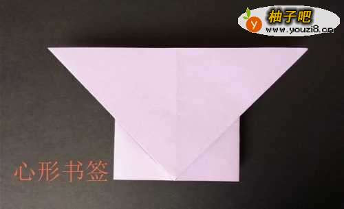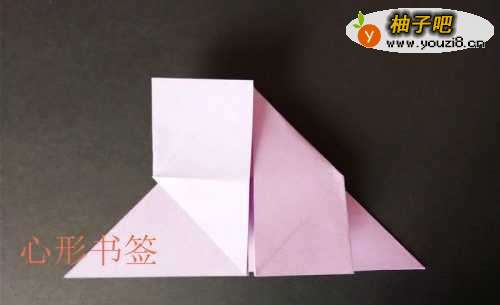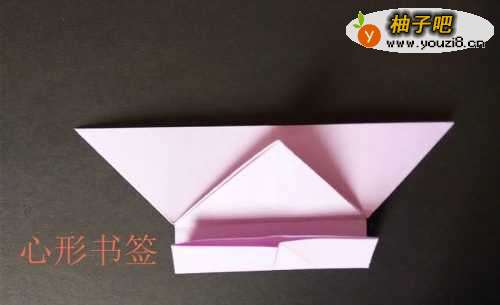 7将每一部分的单层折叠,左边向左折叠,右边向右折叠,使下面也形成一个三角形。在将小三角形尖向上折叠。折好翻转过来压平即可,书签折成功。