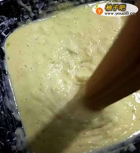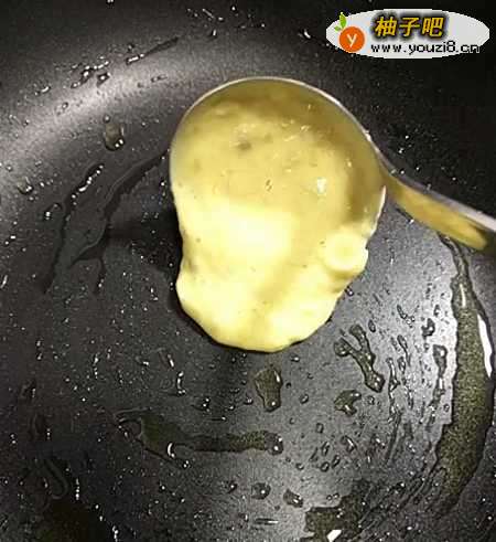 4平底锅刷上一层油,倒入搅拌好的面糊;