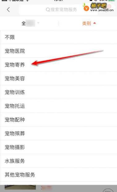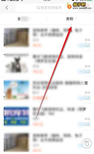 4就能看到“全城”的宠物服务了。点击右上角“类别”。