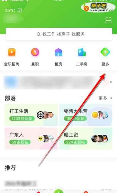 1、开启赶集网,点击右上角“更多”;