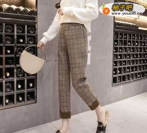 格子毛呢裤子搭配上衣