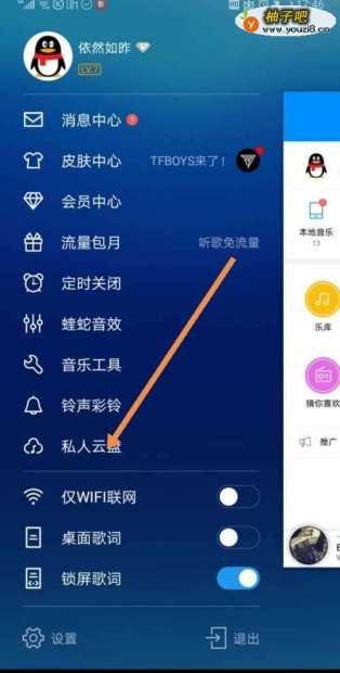 3点击私人音乐云盘。它的容量有10G。