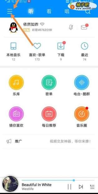 2登陆自己的酷狗音乐帐号,如果没有的话能注册,用QQ或者微信帐号登陆。登陆后点击如图所示的三根横线。