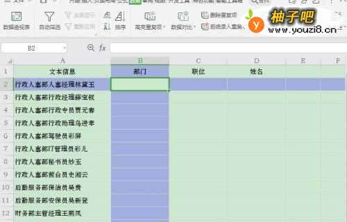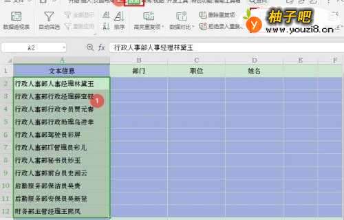 本经验介绍在WPS Office技巧应用中,Excel怎样按核心字分列文本内容的执行方式。以包含部门岗位姓名信息的文本内容进行分列为案例,应用场景如下: