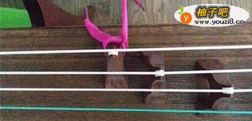 4绕好后在最后的筝码上打个结固定,这样就搞定了。这种办法能让古筝的声音减弱,而不会因为弹奏时候声音太大影响到邻居。
