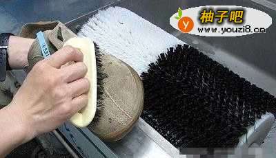 44、然后再用小刷子刷鞋的边缘,如图,这样就能把登山鞋的边缘清除干净。洗完之后就把鞋里面也刷一下这样就差不多了。