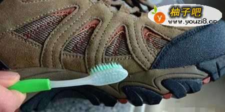 33、用大刷子刷完之后就能用牙刷细刷一下表面,这样登山鞋的表面就清洗干净了。