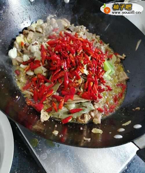 6第六步,然后加入干辣椒在锅中继续翻炒。