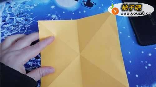 先把彩纸的中间折出米字形,然后再按照折痕折成图二的样子。