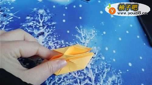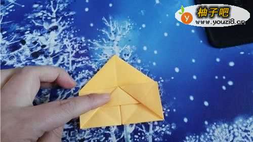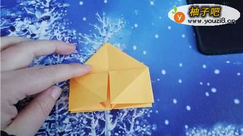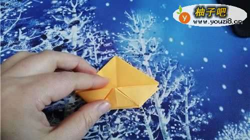 5把两侧的角向内折,再把下面的角上折,然后把中间平铺开,如下图的样子。