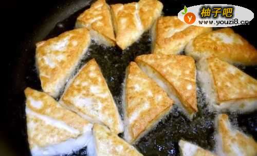 3把一面煎金黄再翻面,两面都煎金黄后捞起备用。