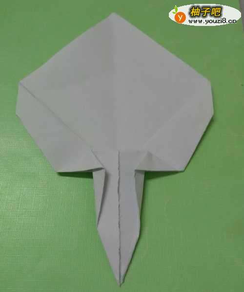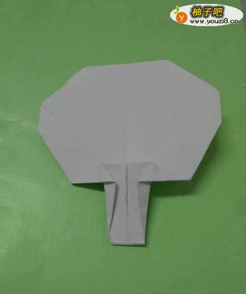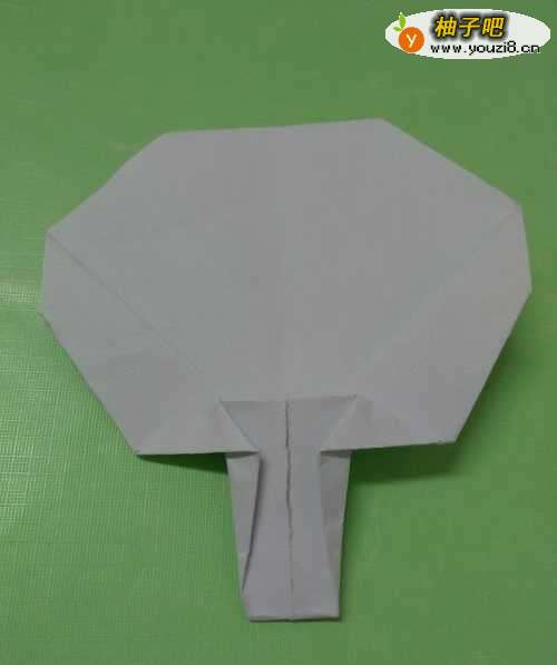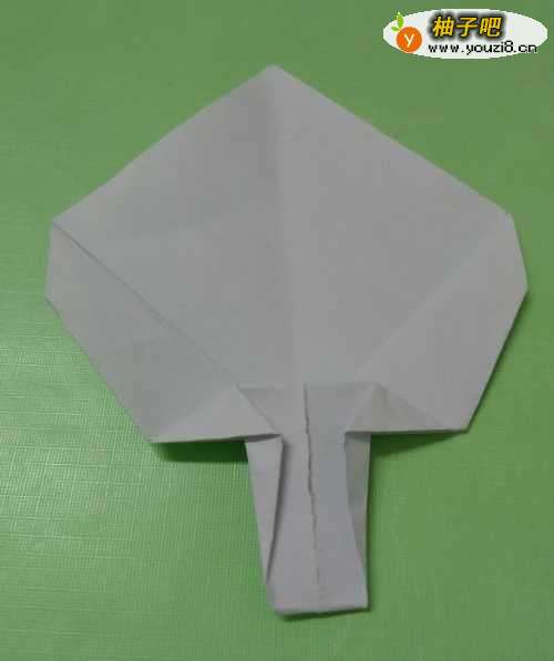 9再将纸上方的角向下折一小段,折成扇面,这样,一把大蒲扇就折好了。